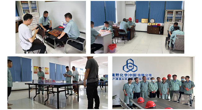 在一周的静态管理期间中,平均每天有100多名员工在司工作和住宿。为了保产,车间干部一直坚持在生产一线监控生产,员工更是不辞辛苦,毫无怨言。特别是女员工,还要克服家庭困难坚守在公司。董事会十分关心这些员工们的身体情况,砂原三利董事长也要求尽全力做好后勤保障,要让在司人员尽量吃好、住好,并优先将好的住宿条件提供给女员工。为缓解员工们长期滞留公司的身心疲劳,平松义辉总经理还指示在5月14日组织了乒乓球、台球和象棋三个项目的竞技,并对获胜员工给予了奖励。