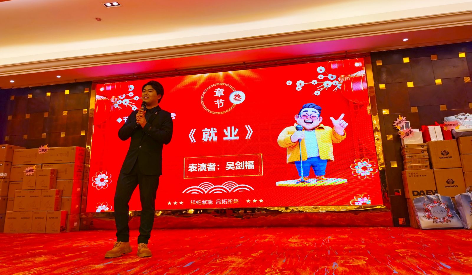 本次新年会分为致辞、表彰、汇演抽奖及晚宴四个环节。